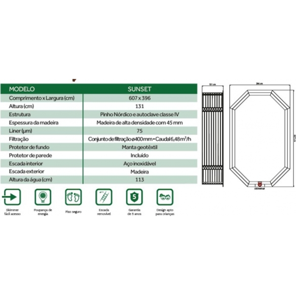 Descrição Esta é uma piscina feita de pinho nordico e autoclave classe IV, madeira de alta densidade com 45mm
