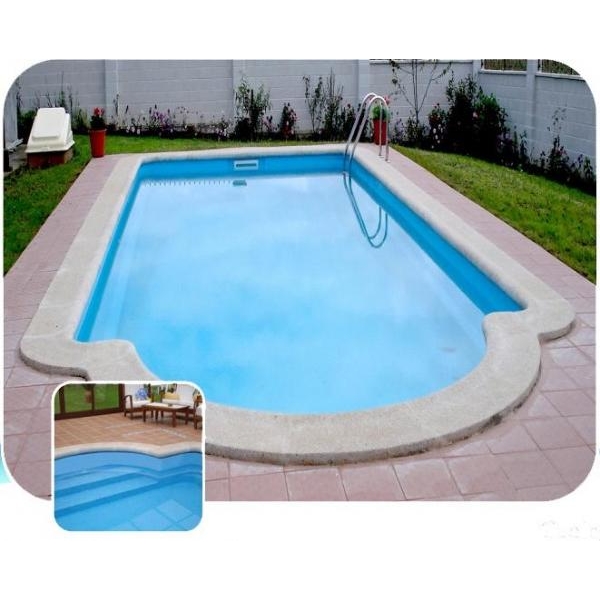 Descrição Piscina de poliester reforçada com fibra de vidro,com grande resistencia e consistencia. De fácil colocação e grande durabilidade. Piscinas de desenho adaptadas a qualquer formato, todas reforçadas em fibra de vidro, dando assim a máxima consistencia. Com estas medidas, ficam excluidos os componentes metálicos para evitar posiveis oxidações. Estes valores referem-se ao casco da piscina.